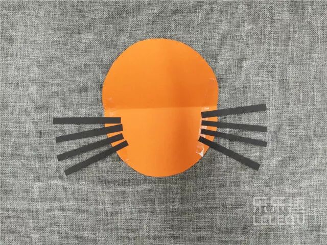 1、取橙色的A4卡纸的一半对折,并剪出图中所示的半圆。取黑色的卡纸剪出八个纸条备用。