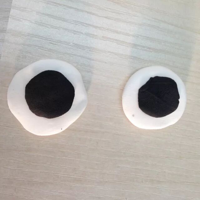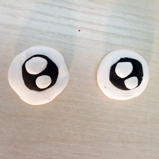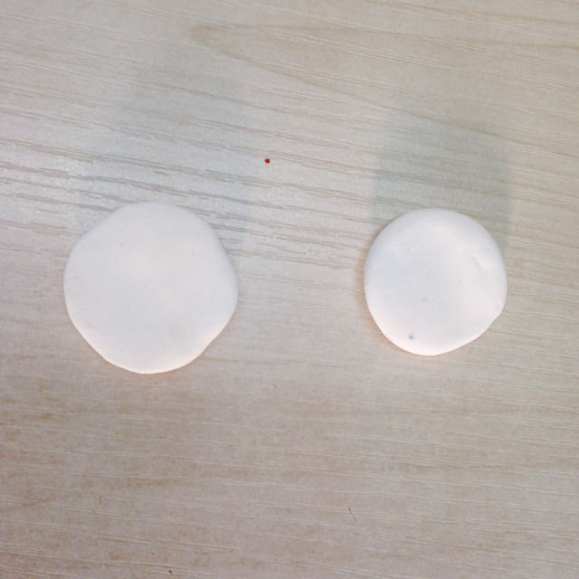 取黑、白两色的彩泥,用按、压的方法制作螃蟹的眼睛(如下图)。