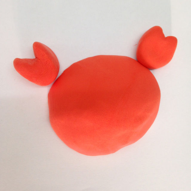 取混合好的彩泥适量,如图捏出螃蟹的蟹壳。