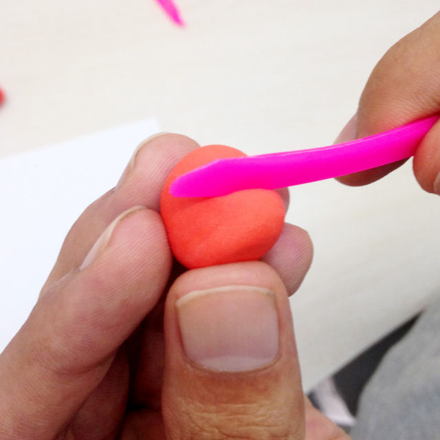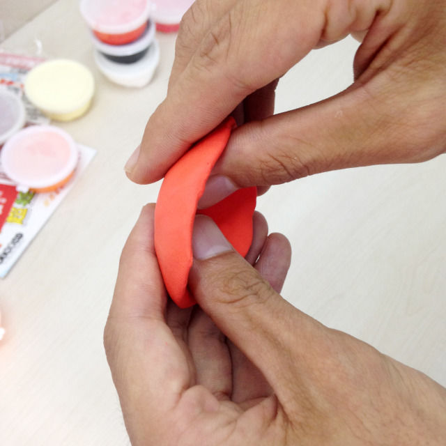 材料准备:红色、橙色、黑色、白色的彩泥适量,彩泥工具一套。