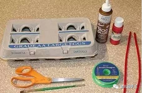 准备材料:鸡蛋壳、颜料、刷子、扭扭棒、剪刀、刀子、胶带