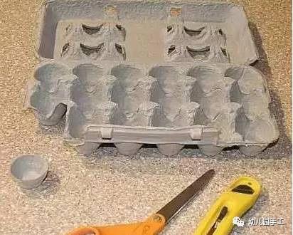制作步骤:鸡蛋托剪出圆形,作为螃蟹的身体并均匀染色