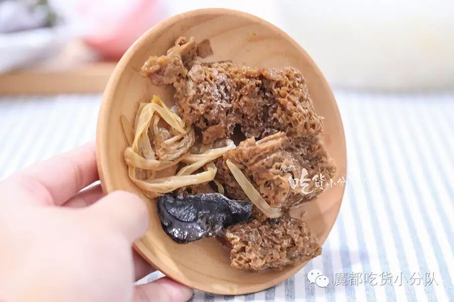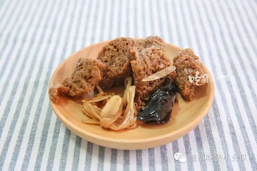 非常非常非常适合配面啊下酒啊什么的,甜甜咸咸的酱汁,锁在每一块烤麸的孔里,每一口都很浓郁~