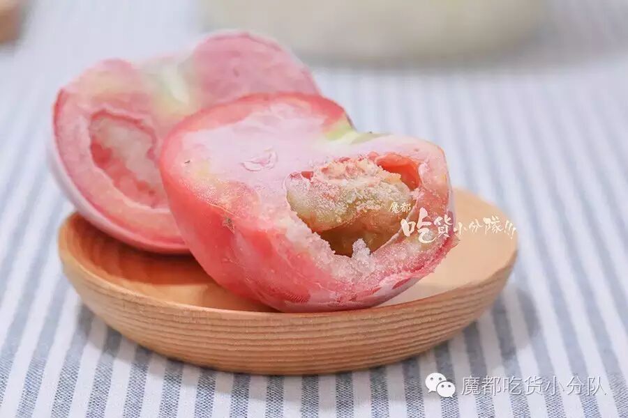 可以切成一片一片的当成梨子味冰沙来吃,还带着梨子本身的颗粒感~