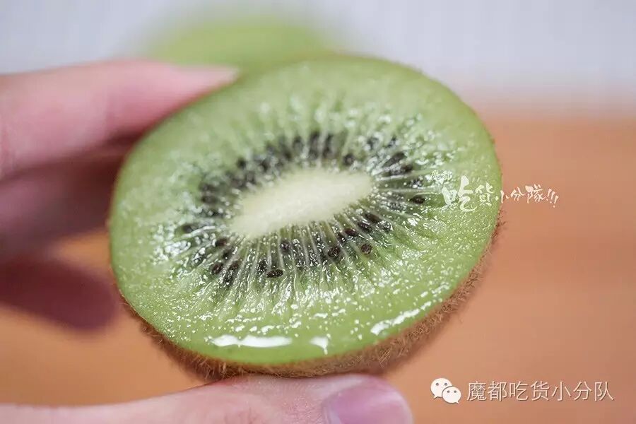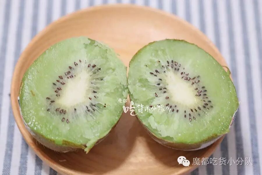 新鲜猕猴桃是水分很多的,硬硬的时候会酸一点,放软一下就会很甜~把软一点的猕猴桃冻一下,想象应该是很不错的~