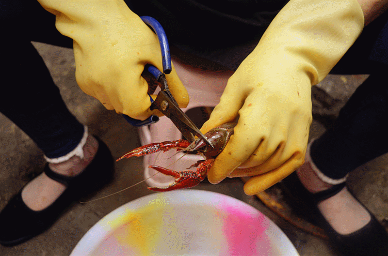 霸王虾的牛逼之处,还在于开创了重庆小龙虾最严格的清洗标准:去沙包、剪小爪、抽虾线、开虾背,经过十一道反复清洗,吃虾,就是要这么干净放心