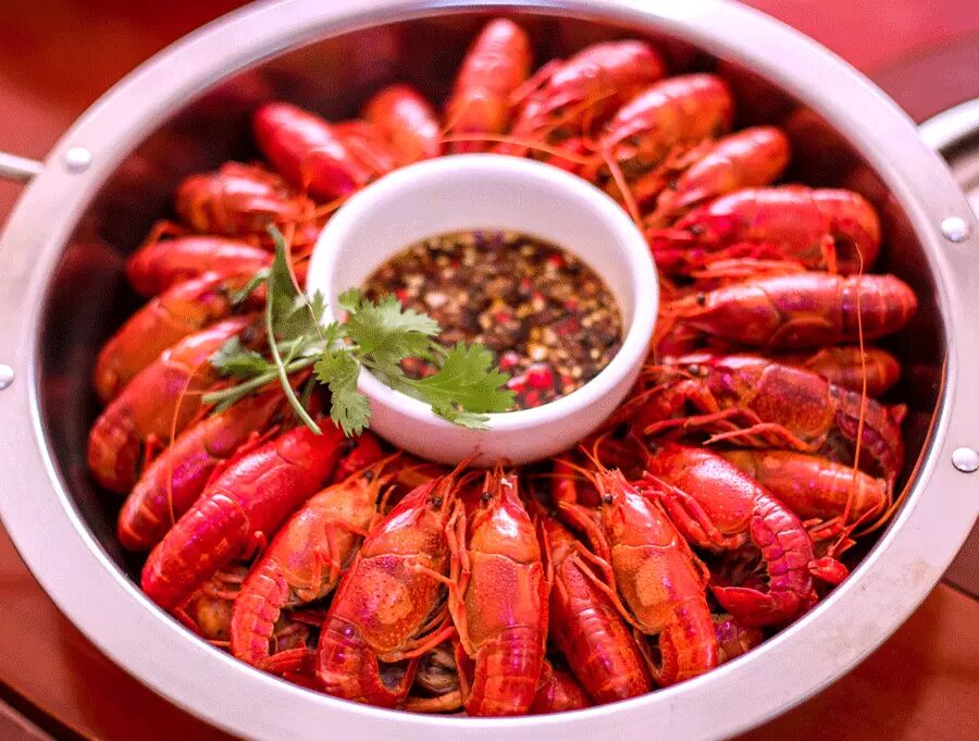 【撩水虾】为了保留小龙虾的原汁原味,这是店里唯一不去头的小龙虾。虾肉饱满新鲜,蘸取鲜香的秘制酱料,一口放入嘴里,不仅保持了原味,也是美味的吃法。