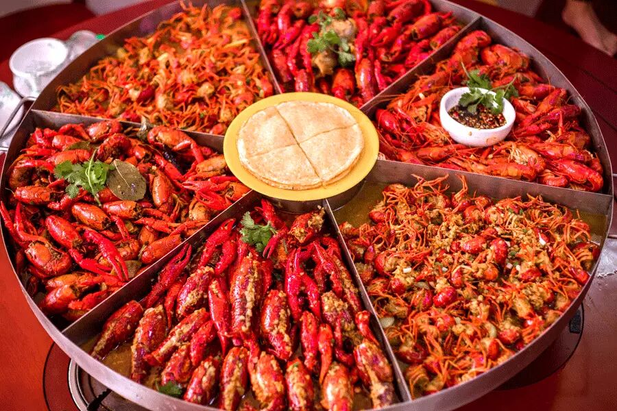 波记虾兵蟹将“六味全虾宴”,包含有六种不同口味的小龙虾,含无敌口味爆头虾3斤,蒜蓉爆头虾3斤,口味虾尾4斤,蒜蓉虾尾4斤,油焖虾3斤,潦水虾3斤,总共足足20斤。另外还赠送蒜蓉卤鸡脚1份,黄金鸡蛋煎饼1份,清水面条1份,小菜1份,凉菜1碟。沅江人没吃过全虾宴敢说你是吃货么?还等什么?约上三五好友来波记团一波吧!