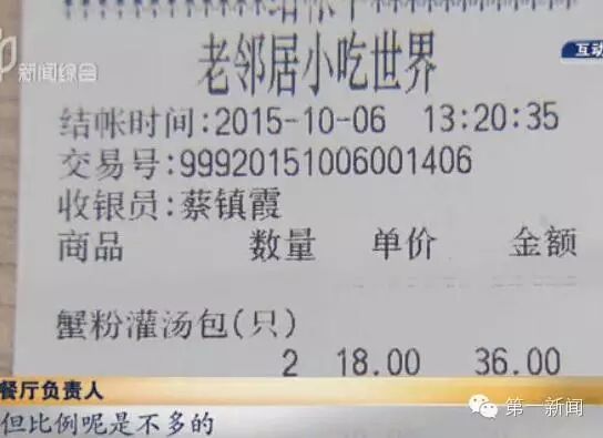 上海豫园42元蟹粉汤包没蟹味 店方:要吃出得99元
