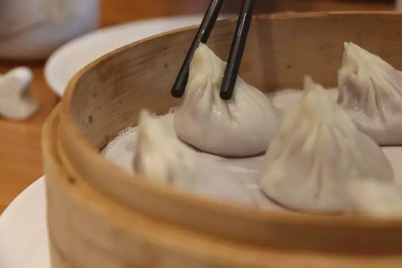 吃这个灌汤包的乐趣就在那一抓一吸之间,汤包皮稍硬,插入吸管,用力吸,整个儿鲜美的味道都在这一口汤里面。