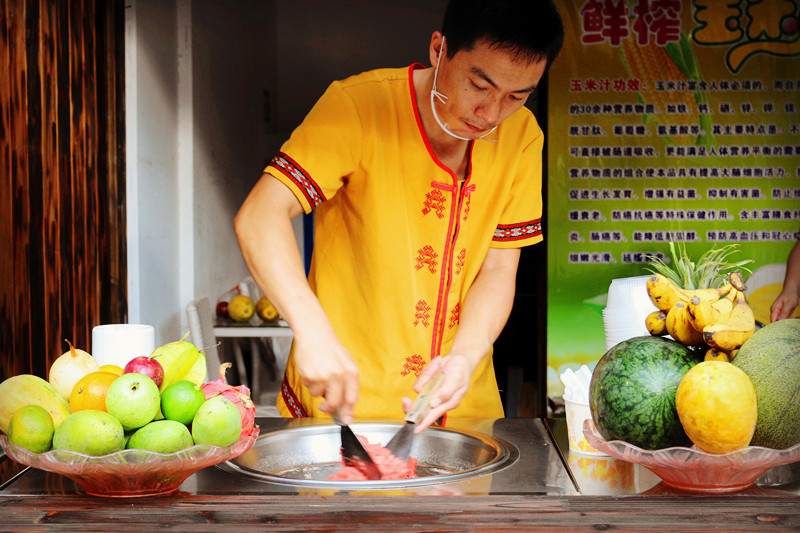 店铺介绍:海南地处热带,盛产多种热带水果,一般人到了海南除了饱览海岛风光、饱餐各式海鲜外,吃遍各种热带水果也是一项重要的旅游项目。景区内出售新鲜的当季水果,并切好装盘,方便食用。