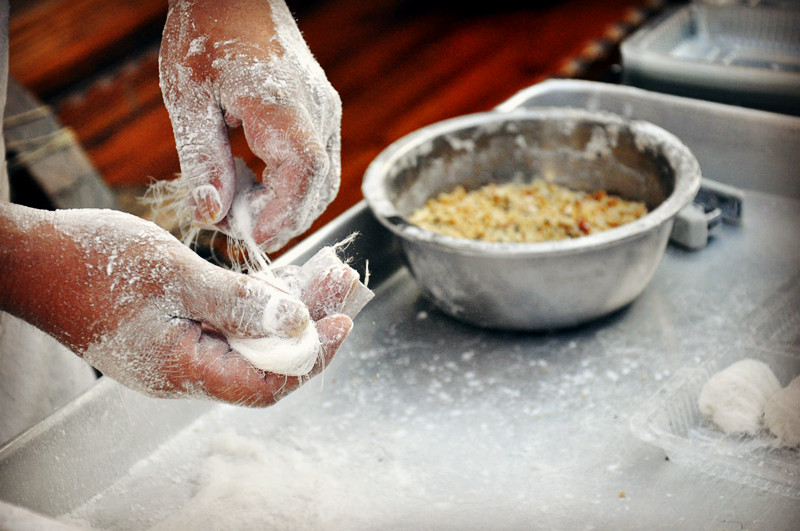 店铺介绍:黎家天涯饼铺的老板是传统黎家人,天涯饼是他儿时母亲最常做的食物,他清晰地记得,小时候天还未亮,母亲便在前厅用独木臼舂打面团,再将做好的饼胚贴在锅炉上慢慢烘烤。如今,经过他的改良天涯饼表皮更加松软Q弹,内馅还是传统的红椰椰肉配上糖,香醇可口。
