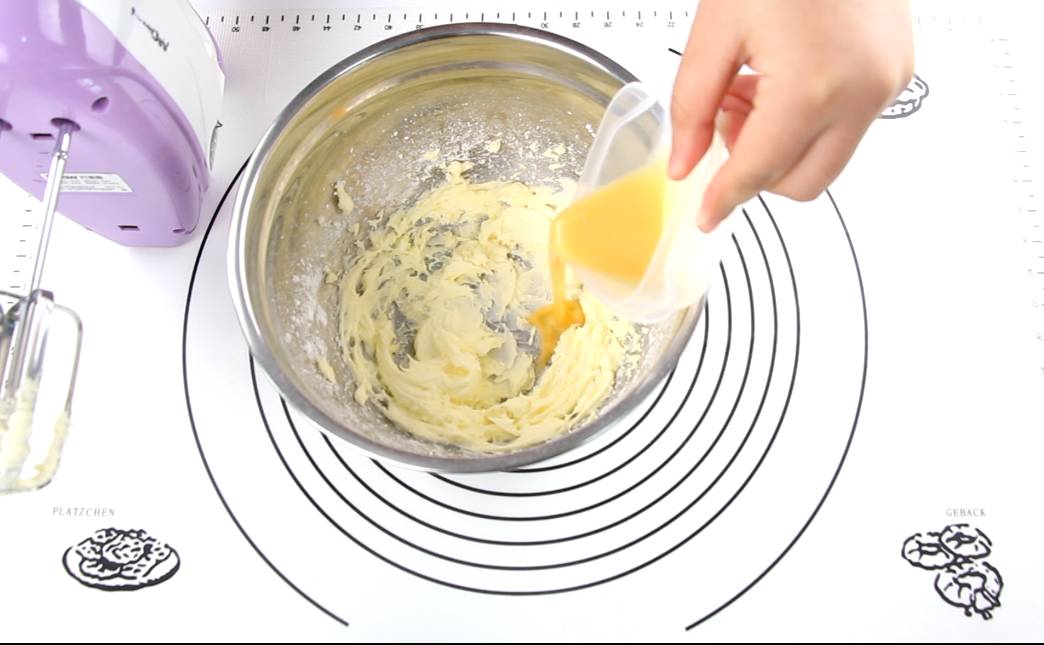 打至融合,再分2次倒入鸡蛋继续打至融合。