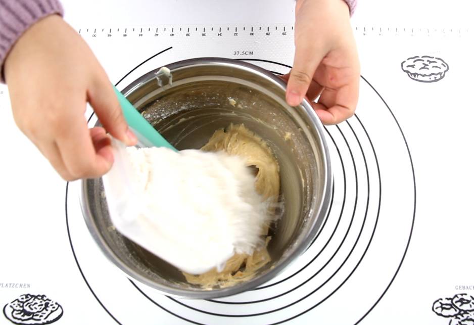 最后倒入135g低筋粉搅拌,成为饼干面团。