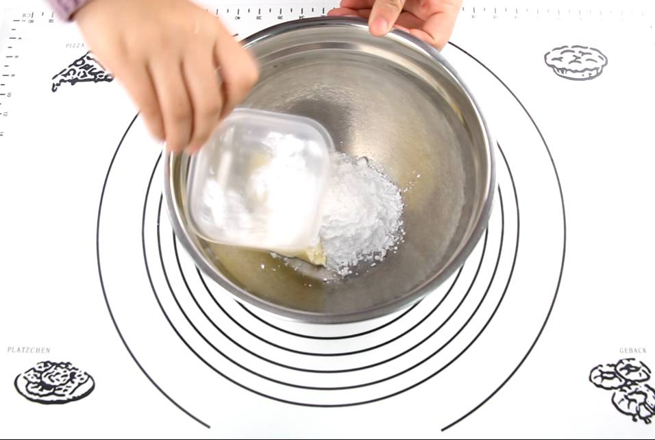 70g软化的黄油和40g糖粉倒入打蛋盆中,