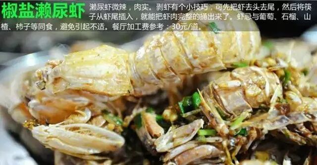 濑尿虾微辣,肉实。剥虾有个小技巧,可以先把虾去头去尾,然后将筷子从虾尾插入,就能把虾肉完整的捅出来了。虾忌与葡萄,石榴,山楂,柿子等同时食用,避免引起不适。