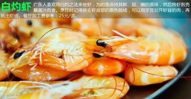 广东人喜欢用白灼之法来做虾,为的是保持其鲜、甜、嫩的原味,然后将虾剥壳蘸酱汁而食。烹饪时记得挑去虾线,可以用牙签划开虾背部的肉,再挑出虾线。