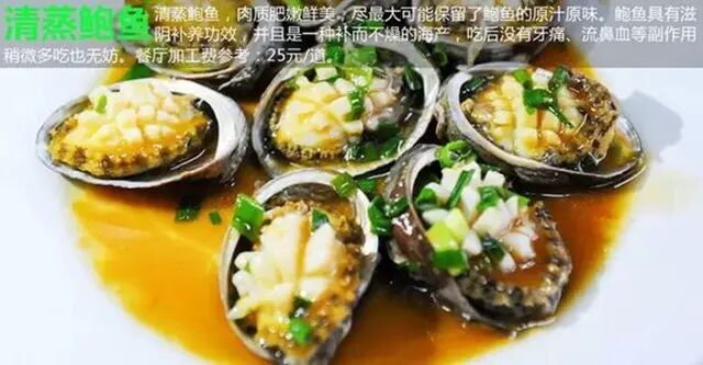 清蒸鲍鱼,肉质肥嫩鲜美,尽最大可能保留了鲍鱼的原汁原味。鲍鱼具有滋阴补阳功效,并且是一种补而不爆的海产,吃了之后没有牙痛、流鼻血等副作用,稍微多吃也无妨。