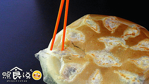 ▲刚刚出锅要赶紧动筷趁热吃,锅贴上的面粉纸还很酥脆,轻轻一碰就“咔嚓”碎裂开来!