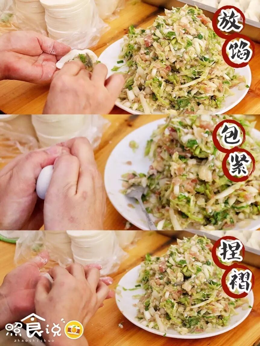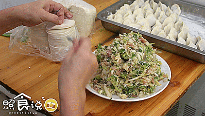 ▲阿姨包饺子的手法已经熟练到生巧,三两下一个带宽褶的饺子就到盘子里“站立待命”了!