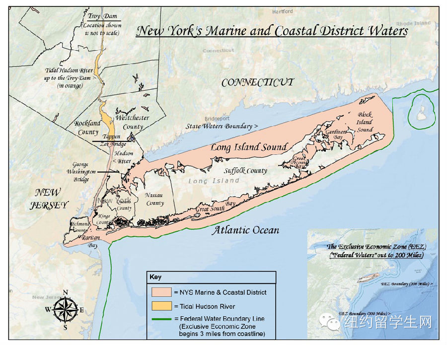 具体纽约州海域范围如下图(橘黄色海域):