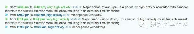 从图中我们可以非常明了的看到,早5:49到7:49,下午6:09到8:09是钓鱼钓螃蟹的最佳时间!