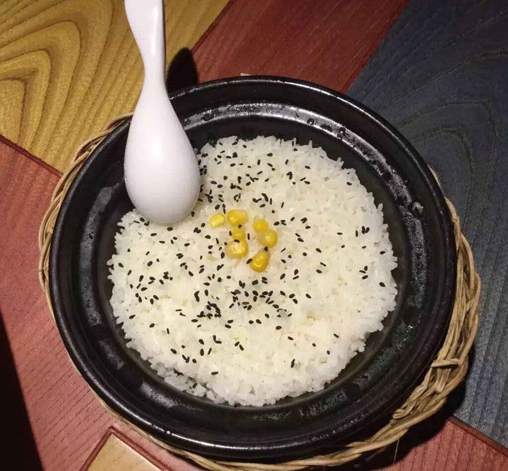 精选的东北五常大米,饭粒尖细,用煲蒸出来的大米粒粒分明,不似家里电饭锅蒸出的大米般粘腻,水汽十足,吃起来还带有芝麻和玉米的香气,是一种全然不同的新口感。浇上菜里的汤汁,滋味十足。