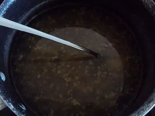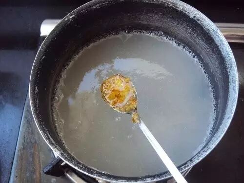 等白糖水冷却至40度左右,在白糖水中加入食用油搅拌均匀,一定要均匀,否则会影响口感的。
