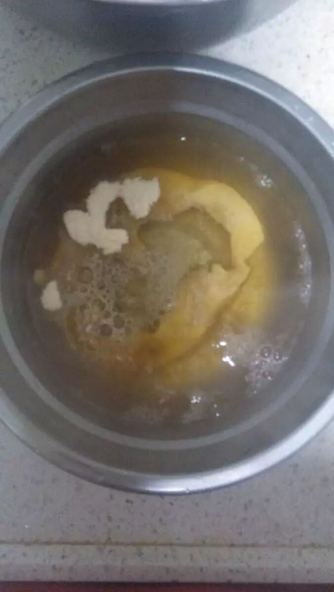 收集桂花有好几个月了,一直想尝试一下做桂花糕, 但一直不敢尝试。昨天被同事激发了我的斗志,终于行动了起来。 新鲜摘的桂花 自己晾干,绝对没有其他防腐剂。 是用鱼胶粉做的,这个可以做到很多种糕。简单方便 花洗干净用水煮出桂花的味道 边煮桂花,一边溶鱼胶粉,用开水搅拌至易化。 然后倒入煮开的桂花水里再煮开就行了。 好的倒入盘子里,放到水里待凉了以后放入冰箱等待凝固。 固好的切块,就可以直接吃啰。 唯一不足的就是桂花全部沉到底下去了, 没有象其他人做的那样可以均匀的分布在每一个位置。 |