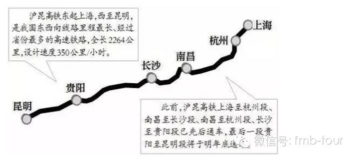 全长2066公里的沪昆高速铁路(又称沪昆客运专线)是国家《中长期铁路网规划》中“四纵四横”的快速客运通道之一。新建沪昆高铁线路云南段长184.7公里,设计时速300公里,预留350公里条件,于2010年9月正式开工,预计2016年底前开通运营。届时建成通车后,这条云南境内的高速铁路,将拉动云南经济社会发展,旅客乘火车从昆明到杭州只要7小时!比现有的沪昆铁路节省27个小时。