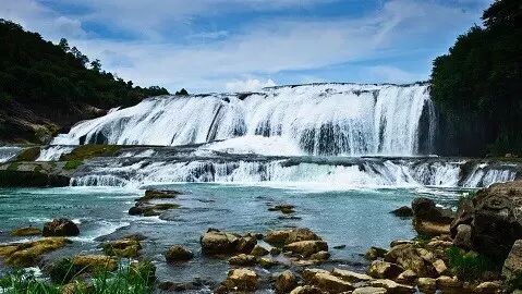 陡坡塘瀑布位于贵州省黄果树瀑布上游1公里处,瀑顶宽105米,高21米,是黄果树瀑布群中瀑顶最宽的瀑布。