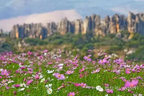 距石林景区8公里处,有一片威严耸峙的黑色石林,面积8平方公里。旧名石门峰或石门哨。乃古石林景区面积约10平方公里,由东区、西区、白云湖、白云洞、古战场等组成。每年十月份都有大片波斯菊开放,不是一般的美!