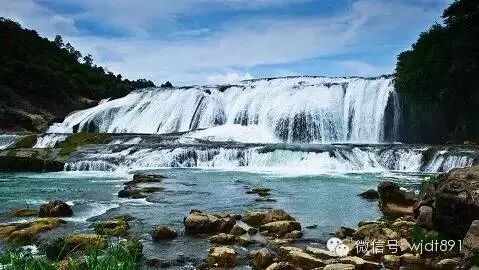 陡坡塘瀑布位于贵州省黄果树瀑布上游1公里处,瀑顶宽105米,高21米,是黄果树瀑布群中瀑顶最宽的瀑布。