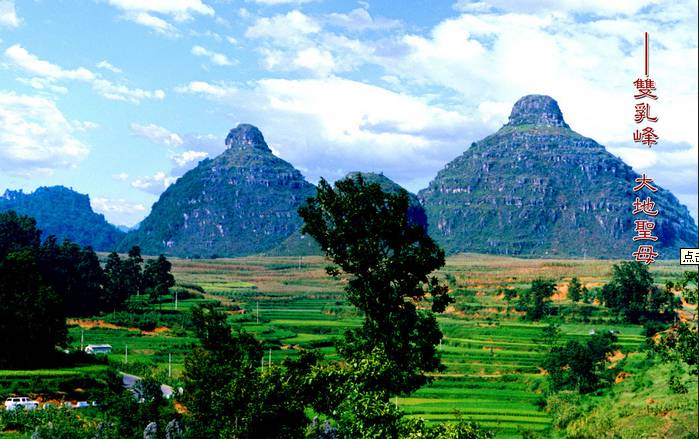 两座兀立的石峰形同女性丰满的,且逼真得让女人看了脸红,男人看了心跳,被当地布依族称为“圣母峰”,被世人誉为“天下第一奇峰”峰。