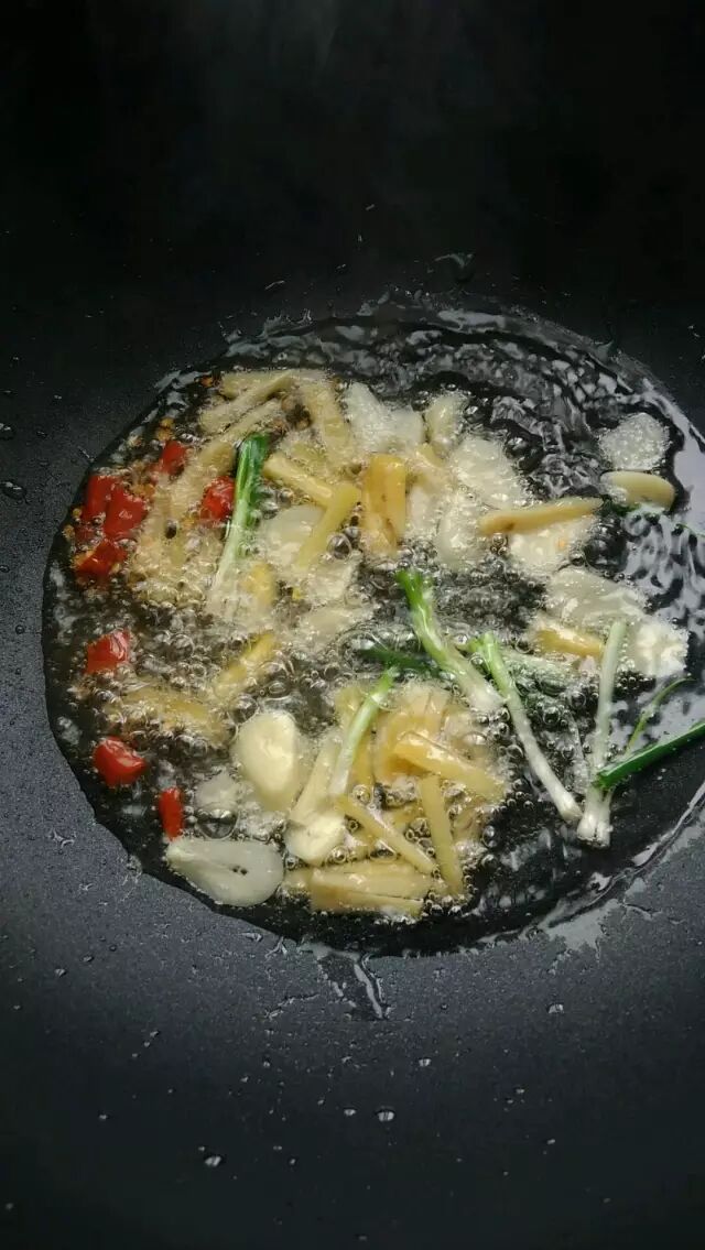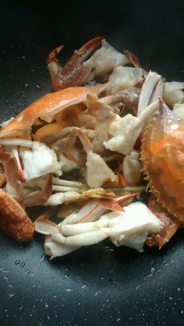 4. 油烧热加入材料,油多点,这样炒蟹有点半炸半炒肉更好,蟹不吃油,做好后,多的油倒小碗可以留着炒别的吃味道不一样哦"关注微信公众号 / 10万道家常菜