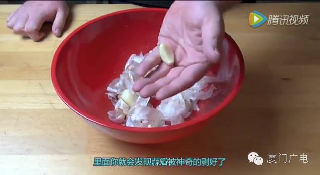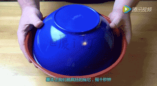 ▼第2步:把按散的蒜瓣放到碗里,上面放上另一个碗,摇晃10秒;