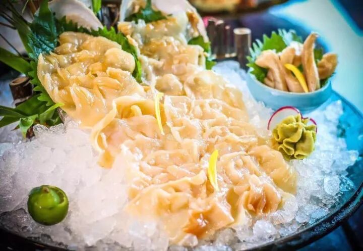 新鲜现切的象拔蚌,加上师傅的雕花刀工,入口更加鲜嫩~