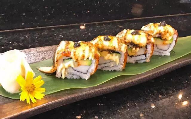 还有店里的大热门黑松露鳗仕卷,鳗鱼做外层,包裹牛油果蟹子芝士,上面黑松露点缀,吃过一块就会神魂颠倒!