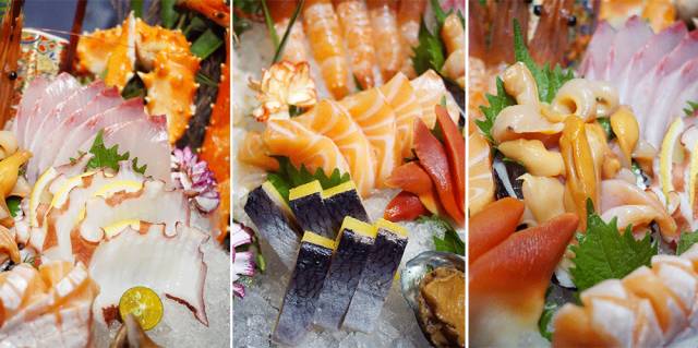 种类实在太多啦,什么三文鱼,甜虾,北极贝之类的就不说了,麻烦老板上几个拼盘来拍一下,让我发个圈圈~