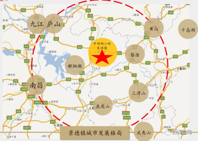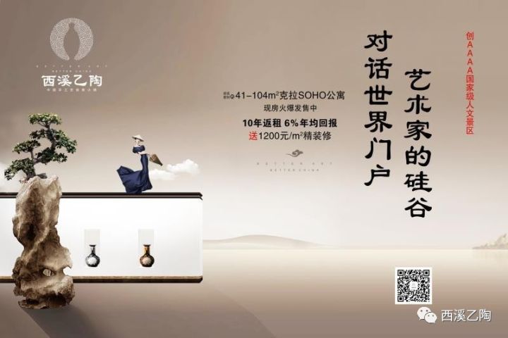 2014年,,城市定位于打造一座与世界对话的城市。西溪乙陶项目得天独厚,位于瓷都西大门,城市西扩的重点——景德镇市国际陶瓷博览会永久会馆旁,雄踞中部会展之都桥头堡位置。站在对话世界门户上,西溪乙陶依托各类系列会展活动,筑就以企业家精英会所集群为特点的文化商业区、国家4A级旅游景区、旅游休闲区、创新交流区、创意展示区,聚集高品位企业家,匠心巨铸具有文化特色的“中国手工艺创意小镇”。