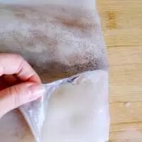 7.从一个角开始用刀斜着一刀刀划开,别断了;