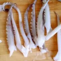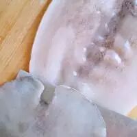2.很肥的大鱿鱼啊,从中间剪开,去掉内脏,眼睛牙啥啥的;