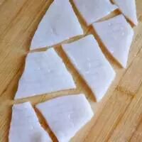 9.都改好刀了,用刀把它切成大小差不多的块,顺着之前的刀印切开;