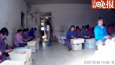 女工们没有穿工服,未戴工帽,还有的女工穿着棉拖鞋。最令人吃惊的是,女工们没有戴手套,而是徒手择鱿鱼条。