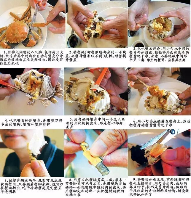 看到这里吓得我赶紧喝了口水压压惊,突然觉得这么多年吃的都是假螃蟹啊。不过好在这些谣言都被一一消灭了,谣言虽然是破除了,但再见到宠幸了多年的大闸蟹时,难免还是会心有余悸啊在这谣言满天飞的吃蟹季节里,与其满怀忐忑的吃着不远万里来的大闸蟹,不如快来宠幸一下家乡的本地蟹吧。最后的最后,决定发扬雷锋精神同时为了将光盘行动落实到行动,给大家安利一下最详细的吃螃蟹方法吧~