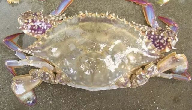 南方海捕梭子蟹的外壳呈茄紫色,外壳相对软一些。