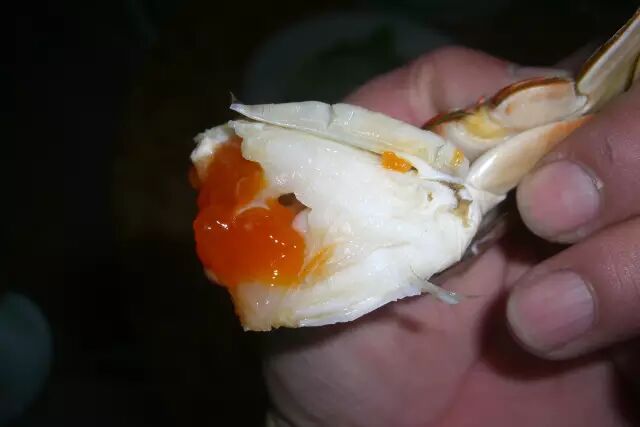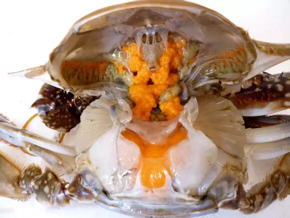蟹身连着蟹脚的部位,有的透明有的发白,透明的好。发白的肚子里全是水,没东西。