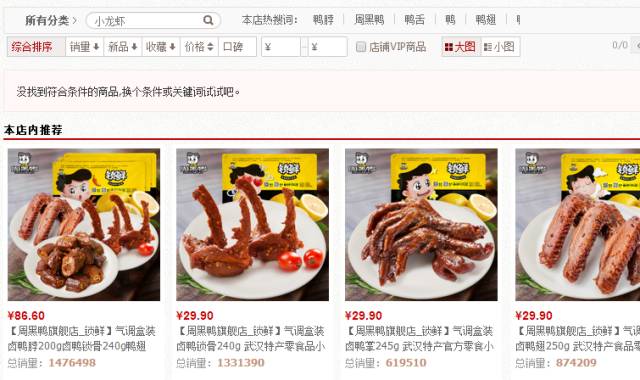 周黑鸭淘宝旗舰店内,现在已经搜不到“小龙虾”