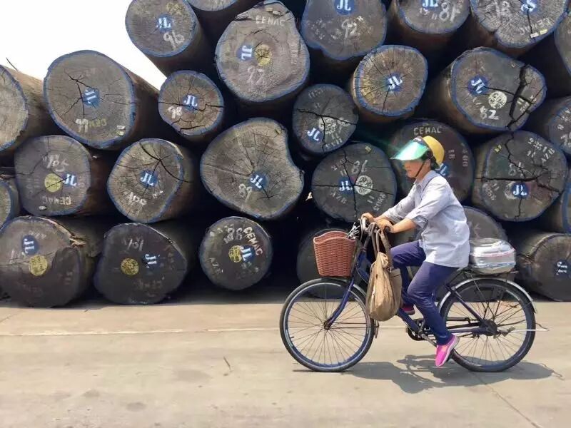 靖江万亿吨级船厂,岸边堆满了被运输的木头