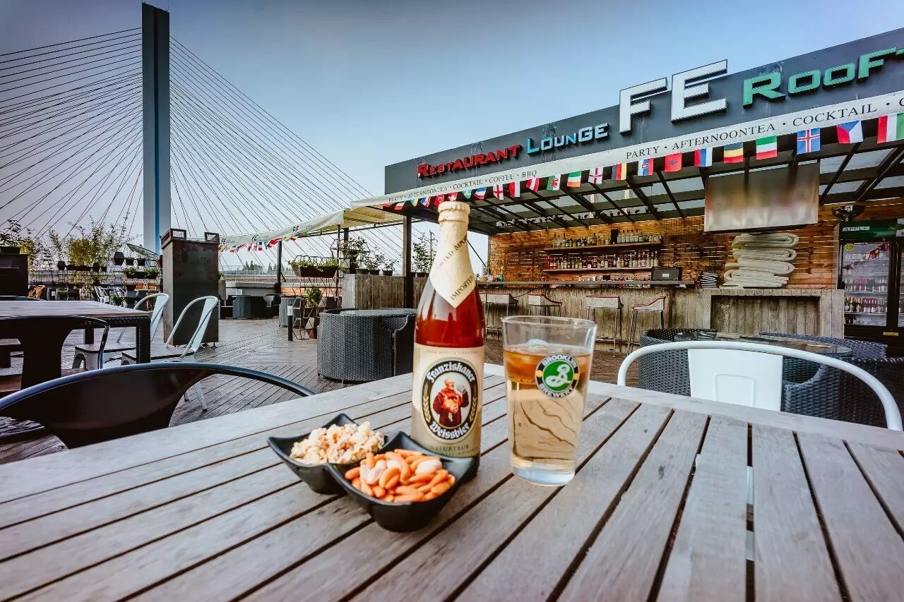 我们将选取20名球迷,明晚到“FE餐吧”花园露台,喝进口啤酒,看巨幕球赛。